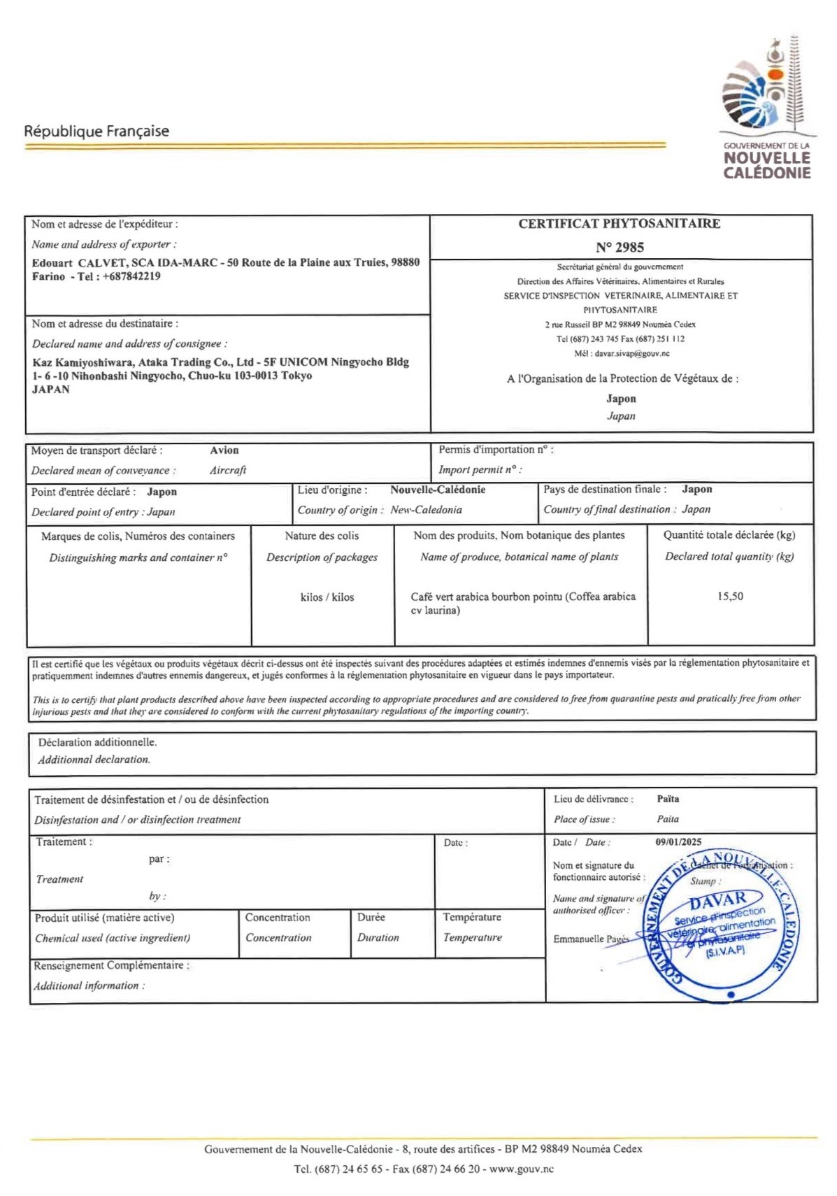 ニューカレドニア・ル・ドメーヌ・イダマーク農園エドゥアール